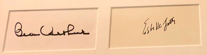 The framed display has been professionally framed that measures approximately 14 1/2 x 15 inches. I say approximately because if it's a little off in measurements I want you to be aware of that. I'm not an expert at measuring that's why I had a professional framer frame it. The frame comes with all preservation techniques to keep your autographs and the display to stand the test of time. The matte is ivory in color and the frame is a black matte in color. It has museum masterpiece acrylic glass which is the best to preserve the artwork that I could find. It also comes with an acid free foam core backing.