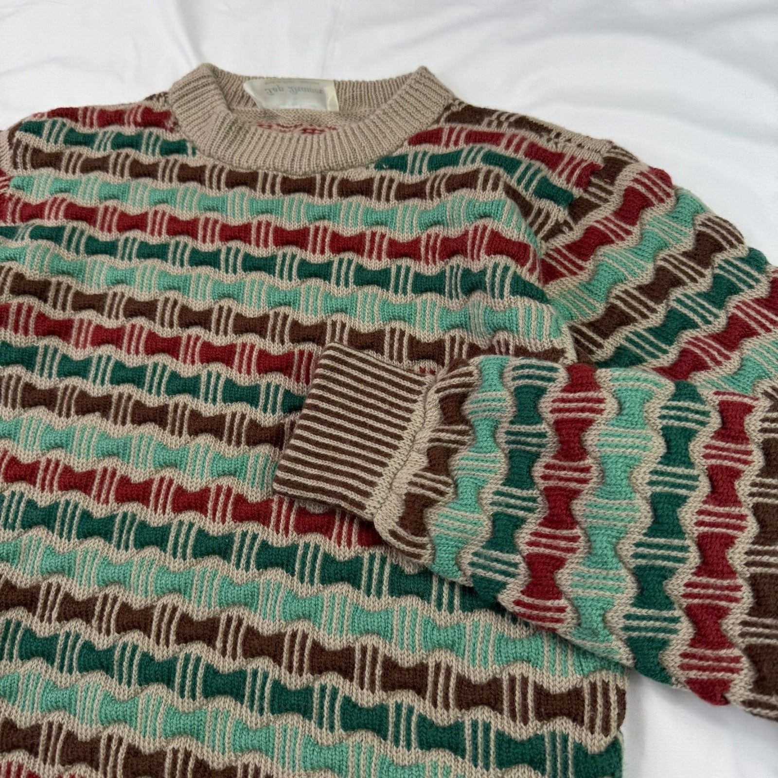 Coogi Style Pure Wool Knitted 3D Sweater Adult Medium Red Green Made in Wales