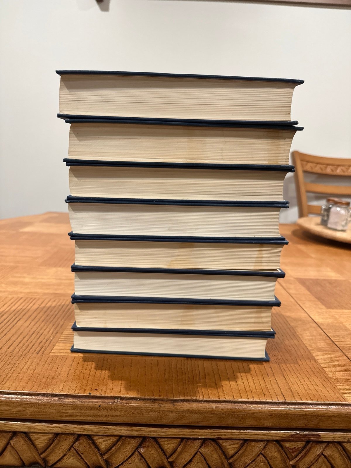Great condition. We never read it. Just been collecting dust on shelf. Heavy beautifully bound books.