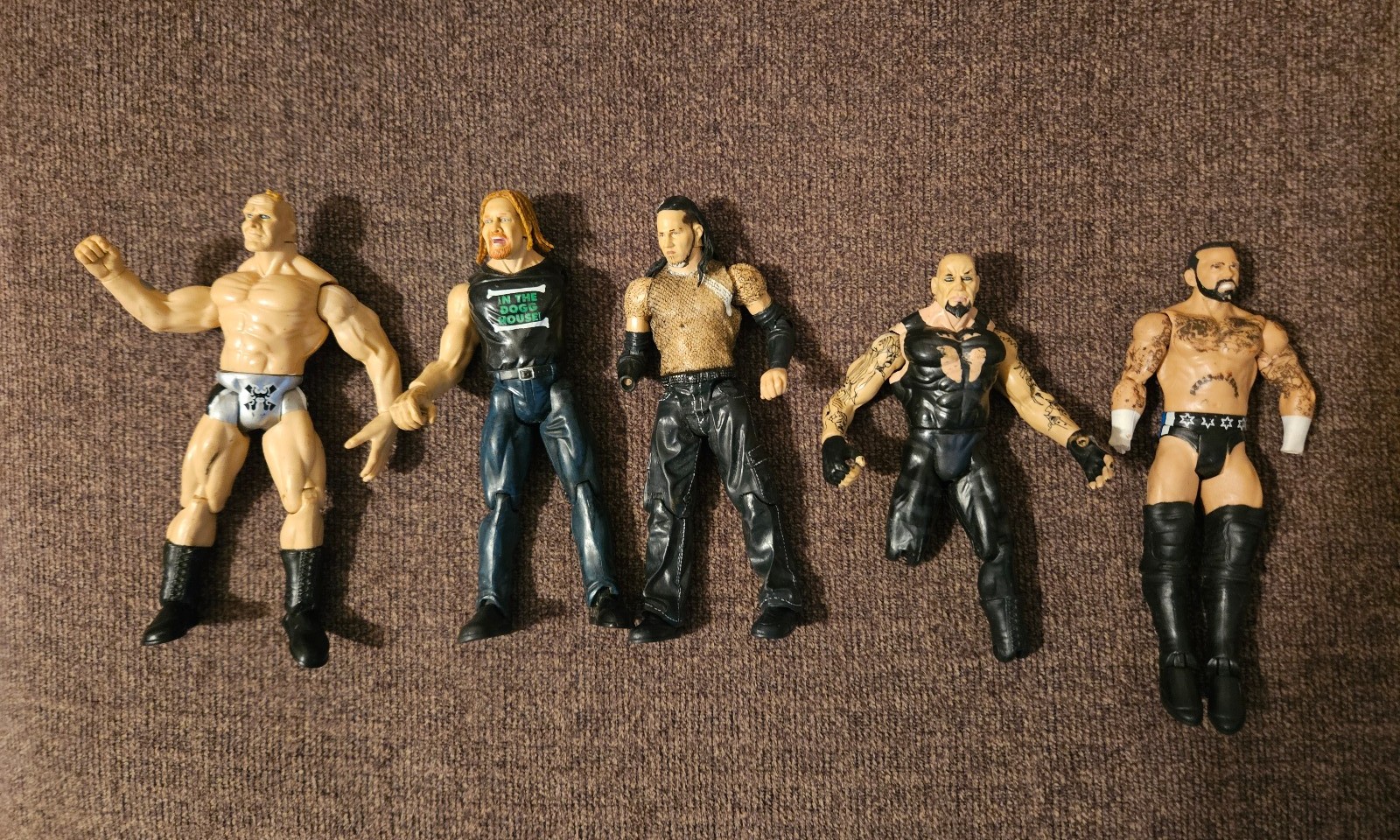 WWE/WWF vintage wrestling figures, 16 total all different toys. 5 of them lost limbs, hair, and other items in a hardcore match lol, the others are in great condition.Thanks for looking and please